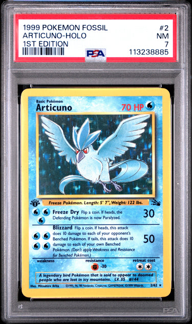 1999 Pokemon Fossil #2 Articuno-Holo 1st Edition PSA 7