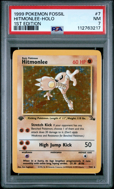 1999 Pokemon Fossil #7 Hitmonlee-Holo 1st Edition PSA 7