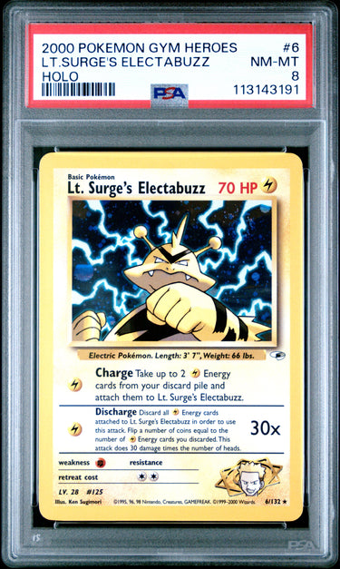 2000 Pokemon Gym Heroes #6 Lt.Surge'S Electabuzz Holo PSA 8