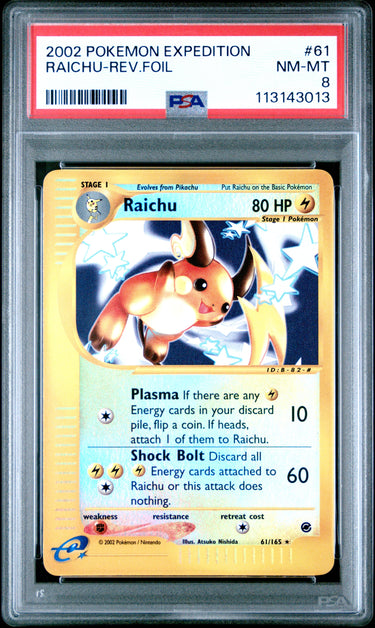 2002 Pokemon Expedition #61 Raichu-Rev.Foil PSA 8