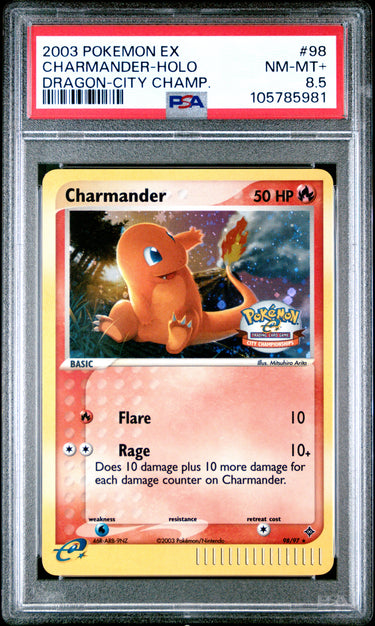 2003 Pokemon Ex Dragon #98 Charmander-Holo Dragon-City Champ. PSA 8.5