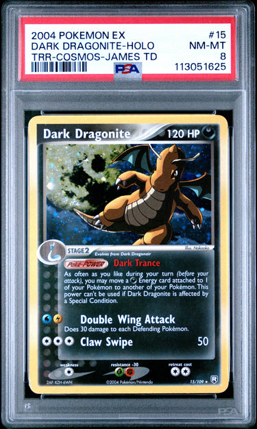 2004 EX Team Rocket Returns #15 Dark Dragonite Holo Cosmos-James Td PSA 8
