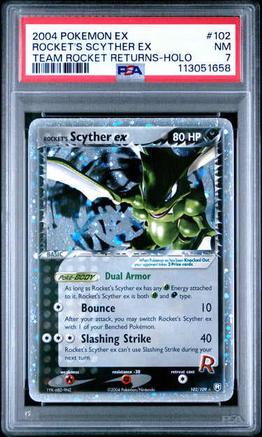 2004 Pokemon #102 Rocket's Scyther Ex Team Rocket Returns-Holo PSA 7