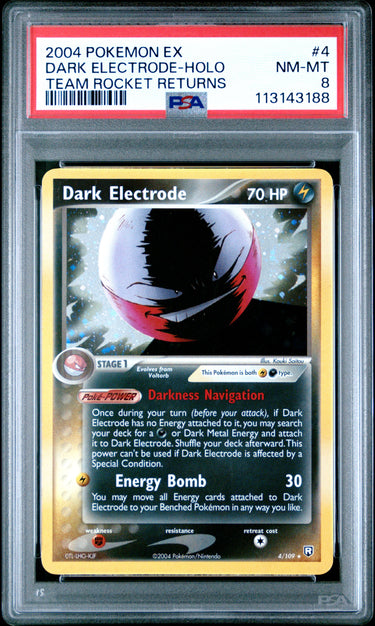 2004 Pokemon Ex Team Rocket Returns #4 Dark Electrode-Holo PSA 8