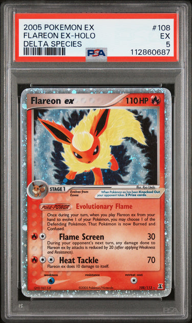 2005 Pokemon Ex Delta Species #108 Flareon Ex-Holo Delta Species PSA 5
