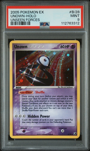 2005 Pokemon Ex Unseen Forces #B/28 Unown-Holo Unseen Forces PSA 9