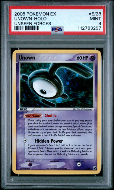 2005 Pokemon Ex Unseen Forces #E/28 Unown-Holo Unseen Forces PSA 9
