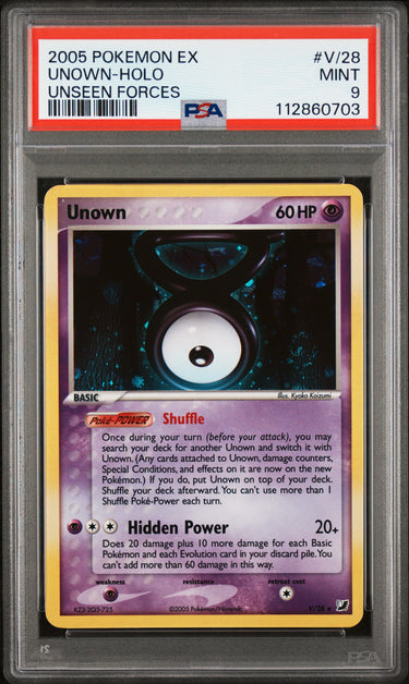 2005 Pokemon Ex Unseen Forces #V/28 Unown-Holo PSA 9