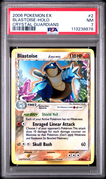 2006 Pokemon Ex Crystal Guardians #2 Blastoise-Holo Crystal Guardians PSA 7