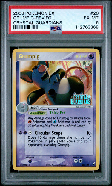 2006 Pokemon Ex Crystal Guardians #20 Grumpig-Rev.Foil Crystal Guardians PSA 6