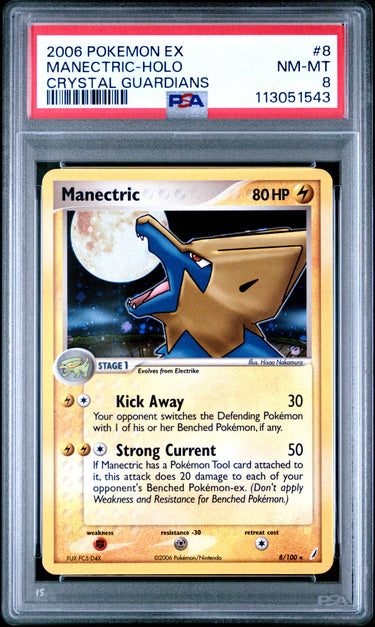 2006 Pokemon Ex Crystal Guardians #8 Manectric-Holo Crystal Guardians PSA 8