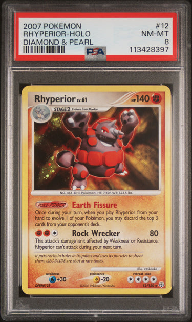 2007 Pokemon Diamond & Pearl #12 Rhyperior-Holo Diamond & Pearl PSA 8