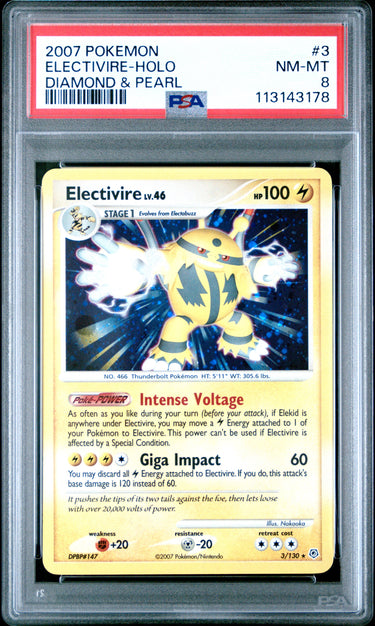 2007 Pokemon Diamond & Pearl #3 Electivire-Holo Diamond & Pearl PSA 8