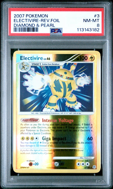 2007 Pokemon Diamond & Pearl #3 Electivire-Rev.Foil Diamond & Pearl PSA 8
