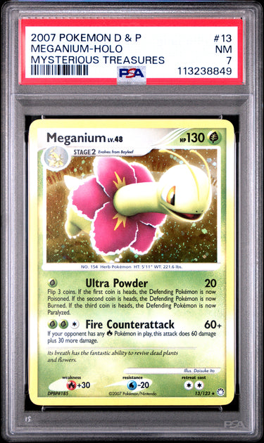 2007 Pokemon Diamond & Pearl Mysterious Treasures #13 Meganium-Holo PSA 7