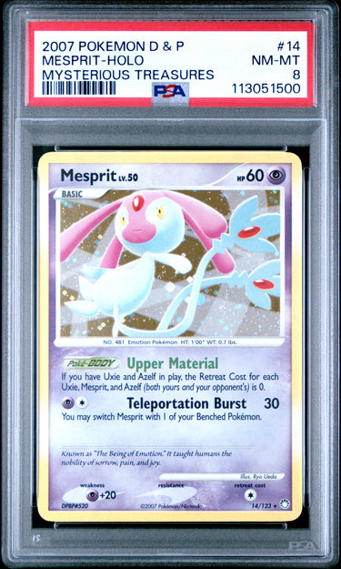 2007 Pokemon Diamond & Pearl Mysterious Treasures #14 Mesprit-Holo PSA 8