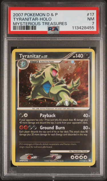 2007 Pokemon Diamond & Pearl Mysterious Treasures #17 Tyranitar-Holo PSA 7