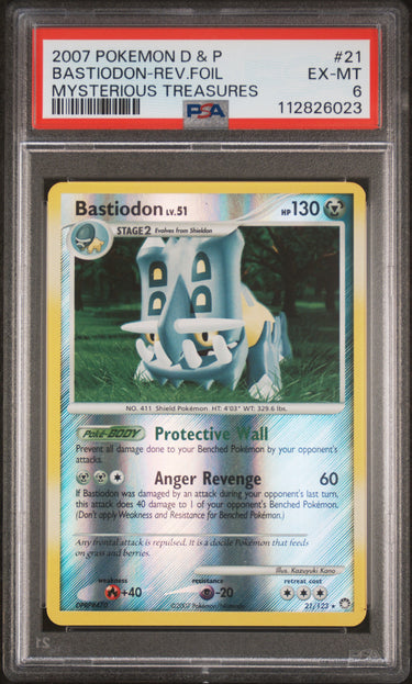 2007 Pokemon Diamond & Pearl Mysterious Treasures #21 Bastiodon-Rev.Foil PSA 6