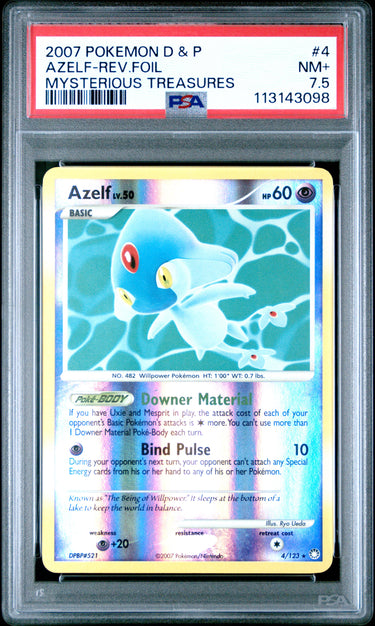 2007 Pokemon Diamond & Pearl Mysterious Treasures #4 Azelf-Rev.Foil PSA 7.5