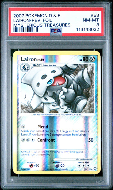 2007 Pokemon Diamond & Pearl Mysterious Treasures #53 Lairon Rev Foil PSA 8