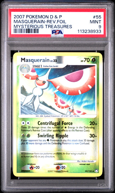 2007 Pokemon Diamond & Pearl Mysterious Treasures #55 Masquerain-Rev.Foil PSA 9