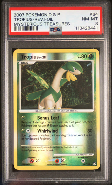 2007 Pokemon Diamond & Pearl Mysterious Treasures #64 Tropius-Rev.Foil PSA 8