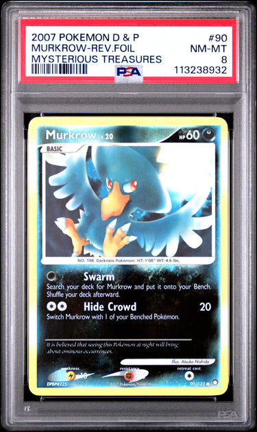 2007 Pokemon Diamond & Pearl Mysterious Treasures #90 Murkrow-Rev.Foil PSA 8