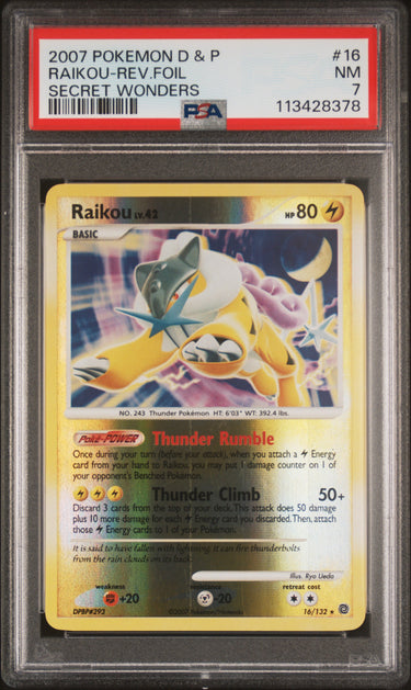 2007 Pokemon Diamond & Pearl Secret Wonders #16 Raikou-Rev.Foil PSA 7