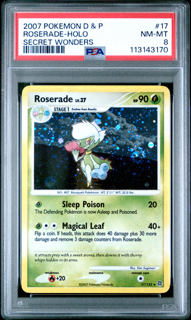 2007 Pokemon Diamond & Pearl Secret Wonders #17 Roserade-Holo PSA 8
