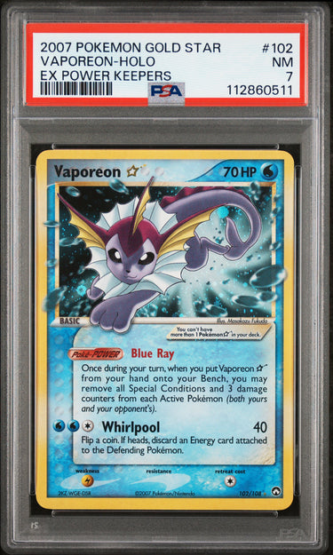 2007 Pokemon Ex Power Keepers #102 Vaporeon-Holo Gold Star PSA 7