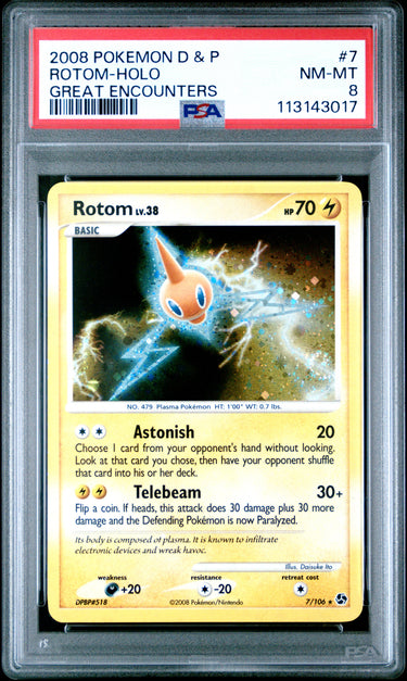 2008 Pokemon Diamond & Pearl Great Encounters #7 Rotom Holo PSA 8 Swirl!