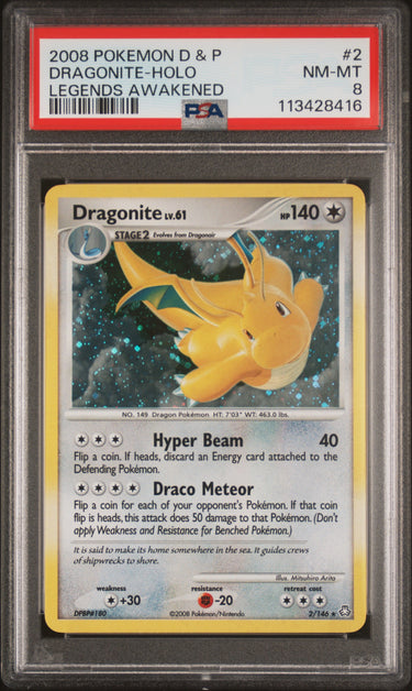 2008 Pokemon Diamond & Pearl Legends Awakened #2 Dragonite PSA 8
