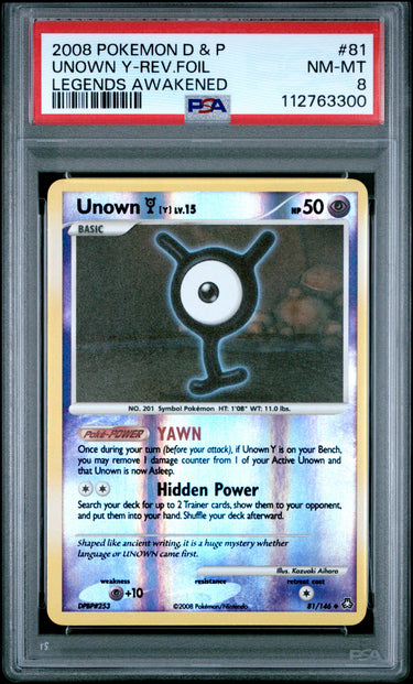 2008 Pokemon Diamond & Pearl Legends Awakened #81 Unown Y-Rev.Foil PSA 8