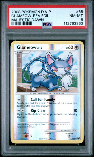 2008 Pokemon Diamond & Pearl Majestic Dawn #65 Glameow-Rev.Foil PSA 8