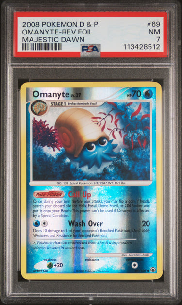 2008 Pokemon Diamond & Pearl Majestic Dawn #69 Omanyte-Rev.Foil PSA 7