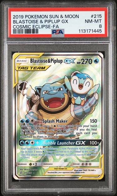 2019 Pokemon Sun & Moon Cosmic Eclipse #215 Blastoise & Piplup PSA 8