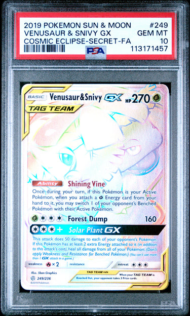 2019 Pokemon Sun & Moon Cosmic Eclipse #249 Venusaur & Snivy Gx PSA 10