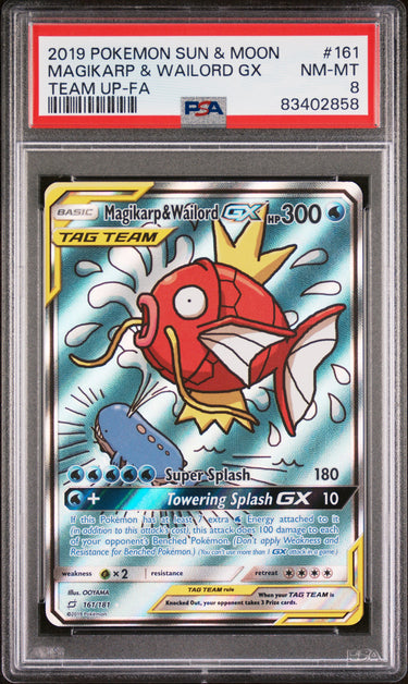2019 Pokemon Sun & Moon Team Up #161 Magikarp & Wailord Gx Team Up-Fa PSA 8