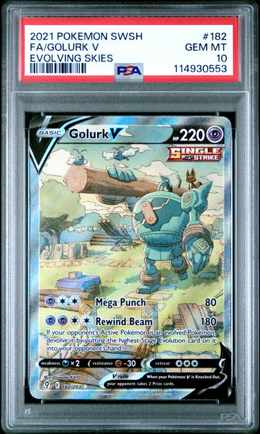 2021 Pokemon Sword & Shield Evolving Skies #182 Fa/Golurk V PSA 10