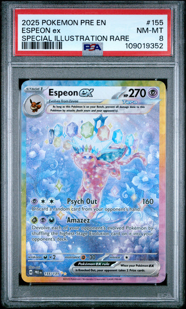 2025 Pokemon Prismatic Evolutions #155 Espeon Ex Special Illustration Rare PSA 8