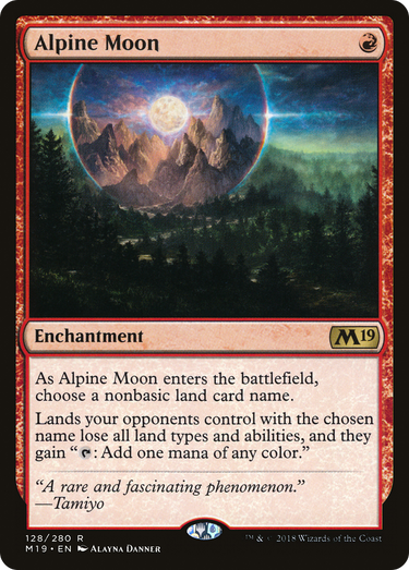 As this enchantment enters, choose a nonbasic land card name. Lands your opponents control with the chosen name lose all land types and abilities, and they gain ": Add one mana of any color."