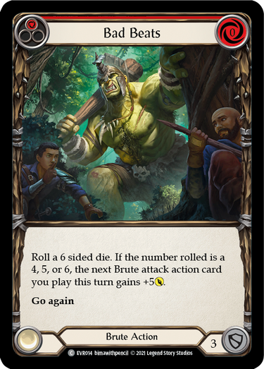Roll a 6 sided die. If the number rolled is a 4, 5, or 6, the next Brute attack action card you play this turn gains +5 [Power].
