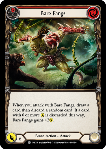 When you attack with Bare Fangs, draw a card then discard a random card. If a card with 6 or more [Power] is discarded this way, Bare Fangs gains +2 [Power]
