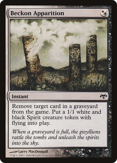 Exile target card from a graveyard. Create a 1/1 white and black Spirit creature token with flying.