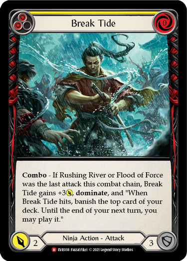 Combo - If Rushing River or flood of Force was the last attack this combat chain, Break Tide gains +3 [Power], dominate, and when "When Break Tide hits, banish the top card of your deck. Until the end of your next turn, you may play it."