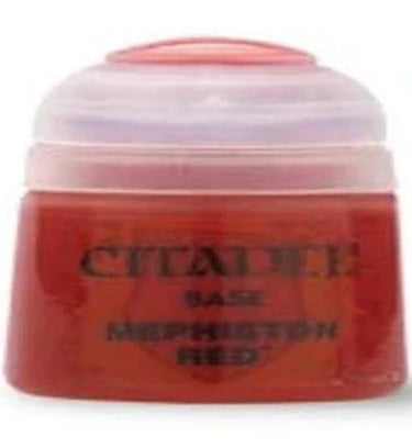 Mephiston Red is a Citadel Base paint. Citadel Base paints are high quality acrylic paints specially formulated for basecoating your Citadel miniatures quickly and easily. They are designed to give a smooth matte finish over black or white undercoats with a single layer. This pot contains 12ml of Mephiston Red one of 34 Base paints in the Citadel Paint range. As with all of our paints it is a non-toxic water-based acrylic paint designed for use on plastic metal and resin Citadel miniatures.