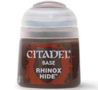 Rhinox Hide is a Citadel Base paint. Citadel Base paints are high quality acrylic paints specially formulated for basecoating your Citadel miniatures quickly and easily. They are designed to give a smooth matte finish over black or white undercoats with a single layer. This pot contains 12ml of Rhinox Hide one of 34 Base paints in the Citadel Paint range. As with all of our paints it is a non-toxic water-based acrylic paint designed for use on plastic metal and resin Citadel miniatures.