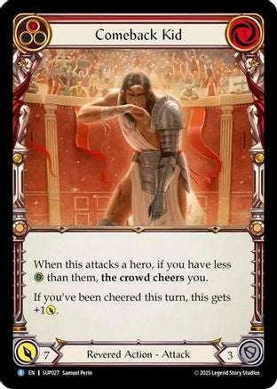 When this attacks a hero, if you have less LIFE than them, the crowd cheers you.