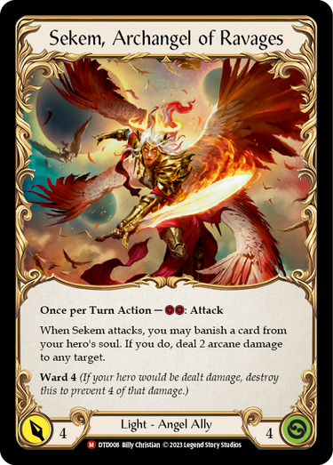 When Sekem attacks, you may banish a card from your hero's soul. If you do, deal 2 arcane damage to any target.