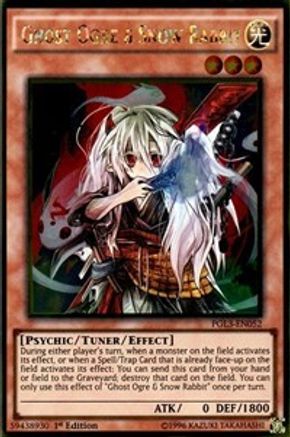 During either player's turn, when a monster on the field activates its effect, or when a Spell/Trap Card that is already face-up on the field activates its effect: You can send this card from your hand or your side of the field to the Graveyard; destroy that card on the field. You can only use this effect of "Ghost Ogre & Snow Rabbit" once per turn.
